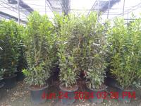 White Flowers May H3.5m S1m. Slight Scent. Dark Fruit. Elegant Upright Habit. Hedging/Screening. Fast Growing. Dark Green Narrow Oval Foliage. Pots/Containers. Wildlife. Cold Tolerant. Wind Tolerant. Shade Tolerant. Moist Well Drained Sites. Evergreen. Sun-Semi Shade.