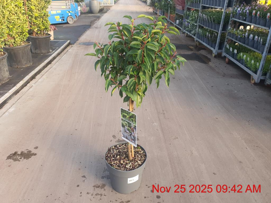 Portuguese Laurel. White Flowers Jun. H6m S5m. RHS Merit. Scent. Fruit. Red Hue. Neat Habit. Evergreen. Sun-Semi Shade. Ideal Screening.