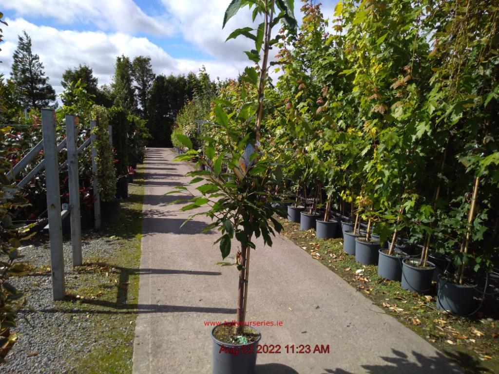 Wild Cherry / Double Gean. Double White Flowers Apr-May. H15m S6m. RHS Merit. Autumn - Red / Orange Hues. Wildlife. Conical Open Habit. Shelter. Pollution Tolerant. Urban Sites. Deciduous. Sun-Semi Shade.