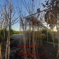 Japanese Cherry Blossom 'Kanzan'. Lilac Double Flowers Apr. H10m S8m. RHS Merit. Young Chestnut Foliage. Autumn Yellow-Orange. Broad Vase-Spreading Habit. Cold Tolerant. Avenues / Urban Sites. Deciduous. Sun-Semi Shade.