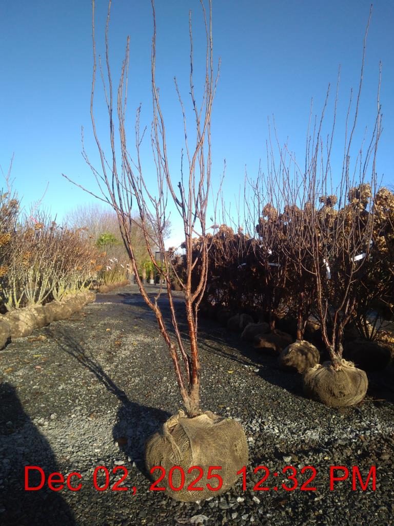 Tibetan Cherry. Biodiversity. White Flowers Apr. H8m S8m. Striking Polished Tan Bark. Autumn- Orange/Yellow. Multistem Specimen. Moderately Slow Growing. Shelter. Winter Interest. Wildlife. Deciduous. Sun-Semi Shade. Bee Friendly.
