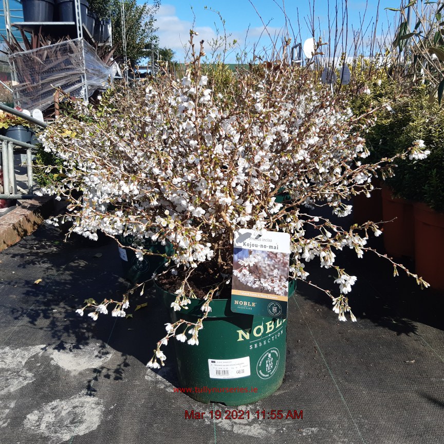 Fuji Cherry / Cherry Kojo-no-mai. Biodiversity. Pale Pink Flowers Mar-Apr. H2.5m S2.5m. RHS Merit. Wildlife. Autumn-Gold. Round Gentle Spreading Habit. Slow Growing. Small Sites. Bonsai Traits. Deciduous. Sun-Semi Shade. Pollinator Bee Friendly.