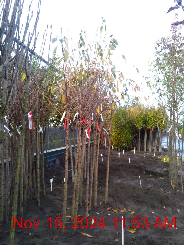 Wild Cherry Blossom / Double Gean. Double White Flowers Apr-May. H15m S6m. RHS Merit. Autumn - Red / Orange Hues. Wildlife. Conical Open Habit. Shelter. Pollution Tolerant. Urban Sites. Deciduous. Sun-Semi Shade. Bareroot.