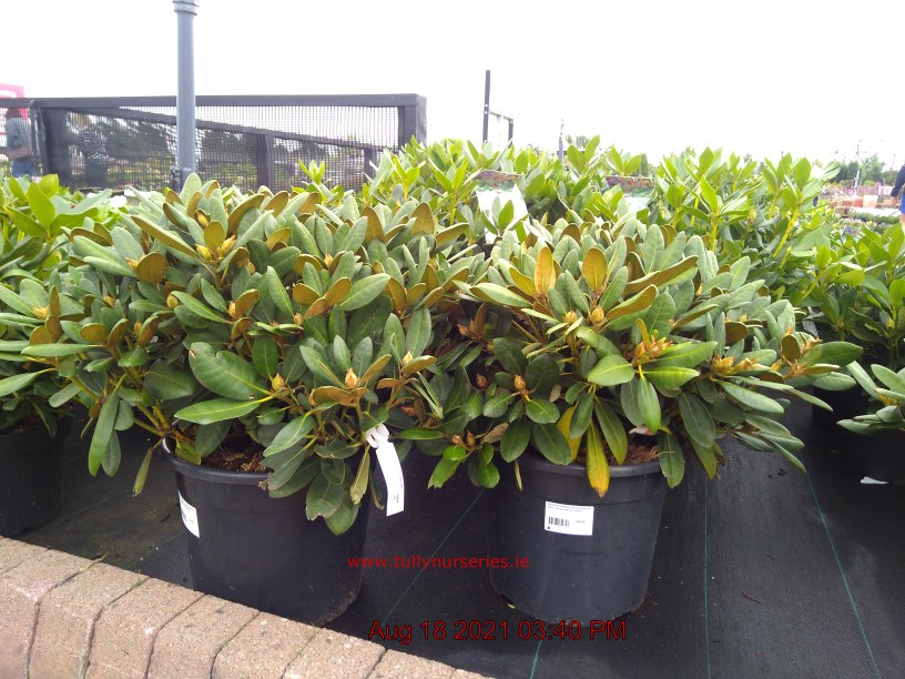 Radiant White/Lime Flowers May. H1m S1m. RHS Merit. Evergreen. Acidic. Shelter. Sun-Semi Shade.