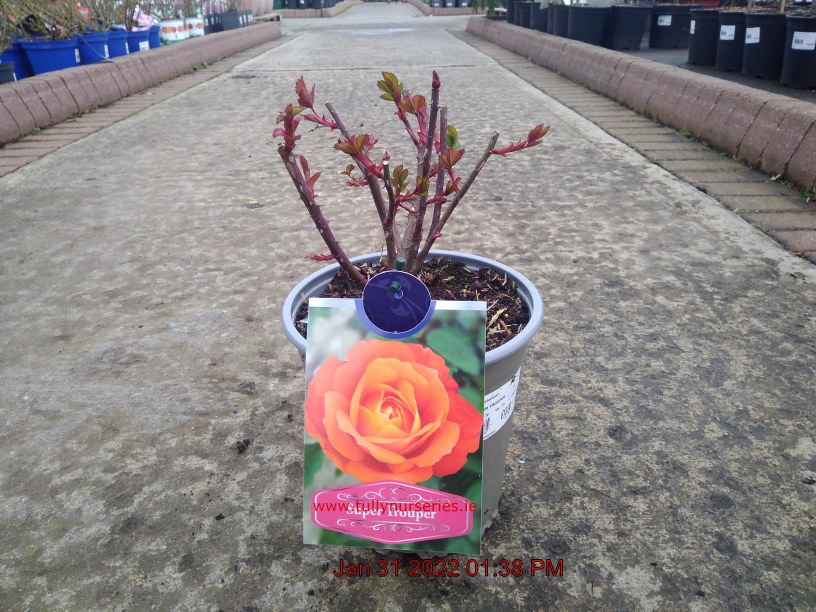 Intense Dusty-Orange Flowers Jun+. H1m S1m. Repeat Bloom. Floribunda. Deciduous. Sun-Semi Shade.