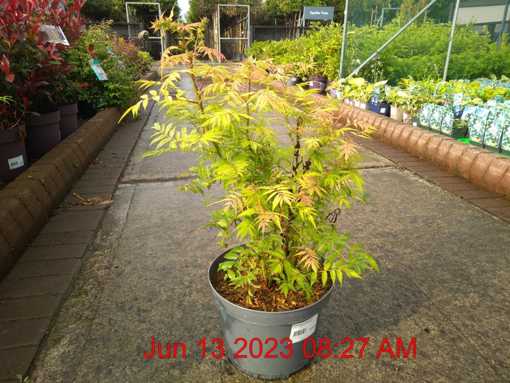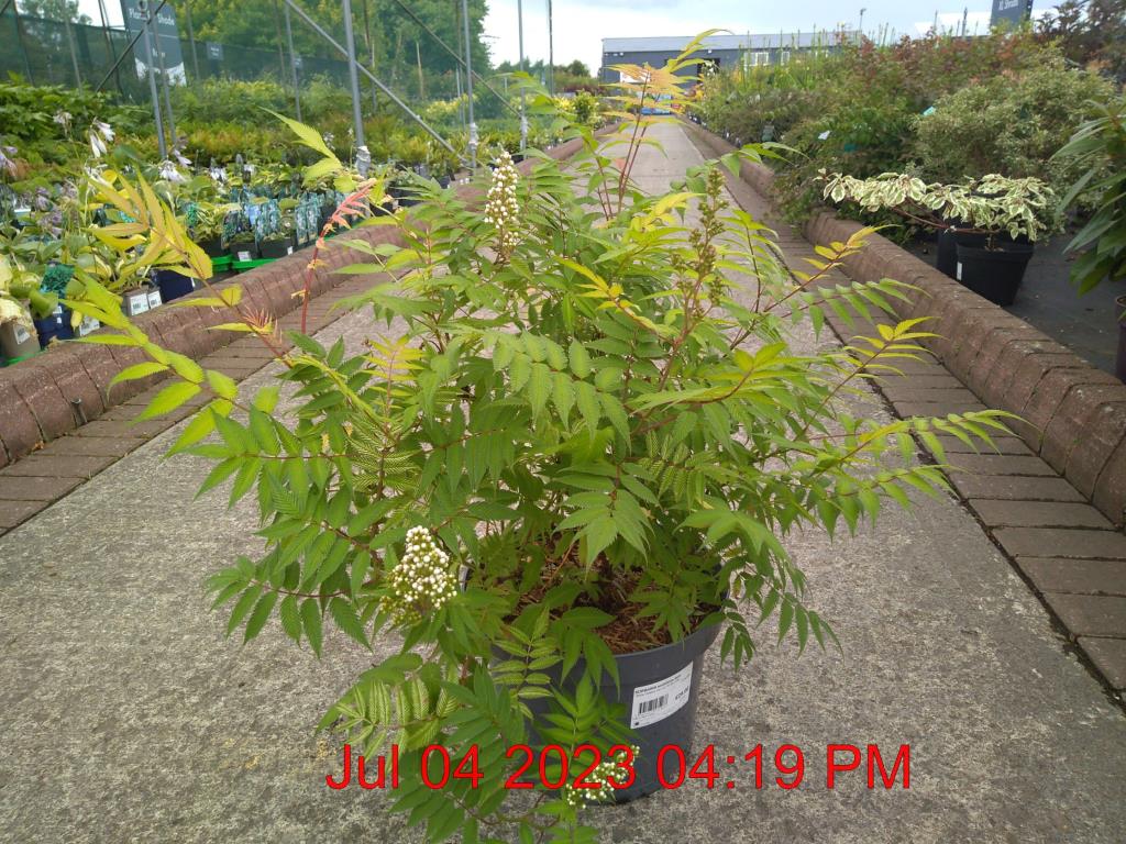 White Flowers Jun-Jul. H1.8m S3m. Fern Foliage. Yellow/Green Bronze Hue. Deciduous. Sun-Semi Shade.