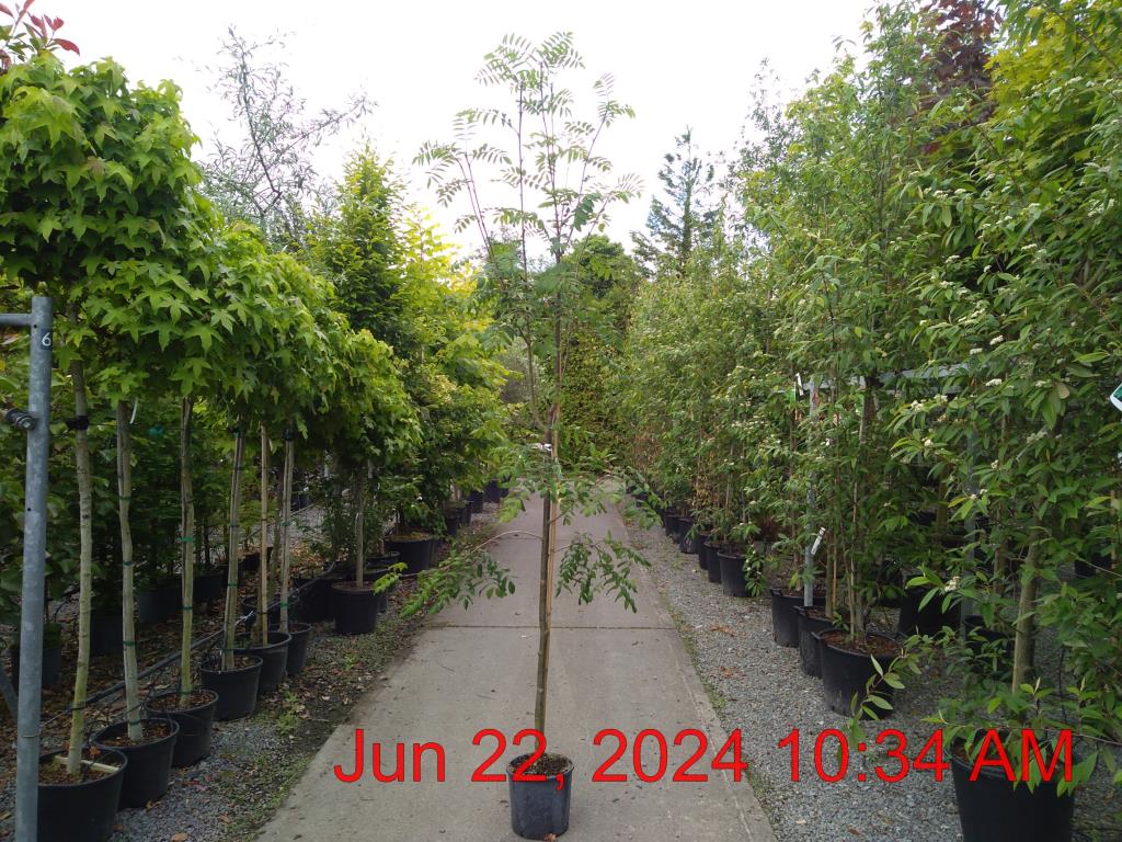 White Cluster Flowers Apr. H10m S4m. Red Fruit. Narrow/Upright Specimen. Deciduous. Sun-Semi Shade.