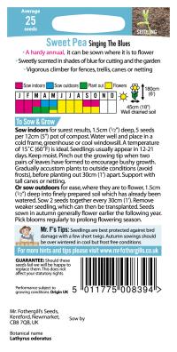 25/Deep-Pastel Blue Shades. H1.8m S0.45m. Sow: Jan-May/Sept-Oct. Flowers: May-Oct. Hardy Annual.