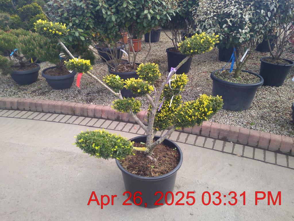 Dense Yew. Pale Orange Flowers Mar. H1.5m S3m. White Fruit. Topiary Traits. Wind Tolerant. Drought Tolerant. Specimen Bonsai Habit. Small Sites. Evergreen. Sun-Semi Shade.