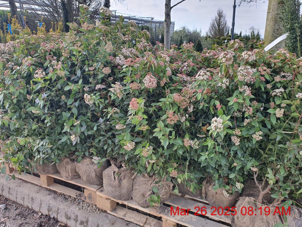 Petite Blushed Cream/Pink Flowers Jan-May. H4m S4m. Scent. Blue Fruit. Evergreen. Sun-Semi Shade.